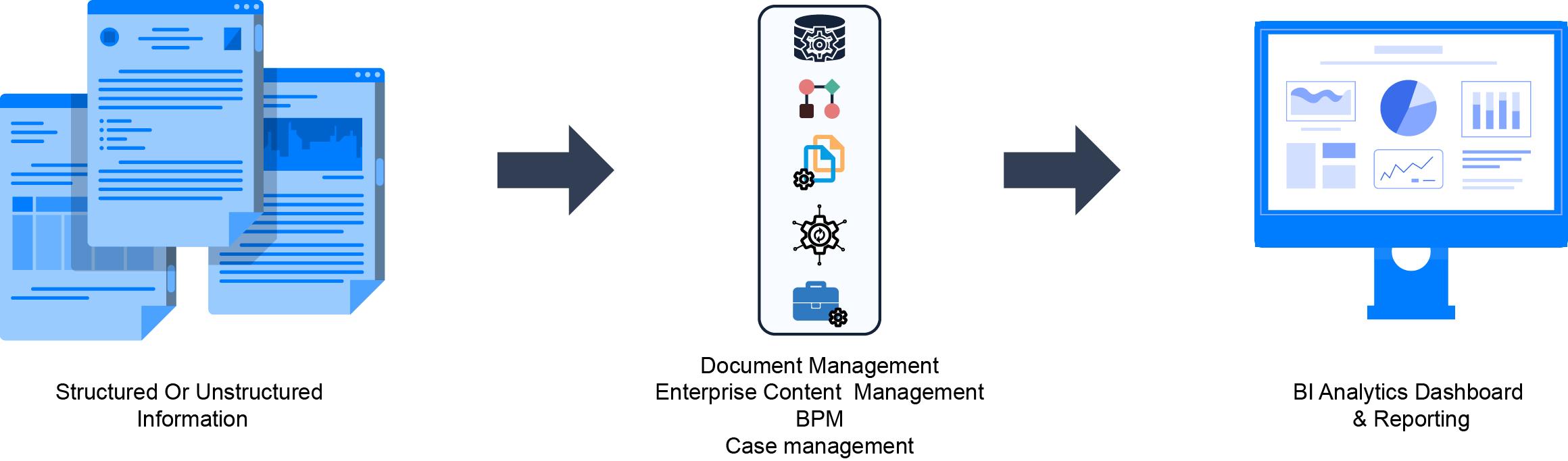 BI Dashboard & Reporting is a core component of SoluSoft Business Process Digital Transformation Solution Suite. This captures end-to-end transactions and transactional data across multiple application servers. It summarizes and displays metrics to users with several reporting and activity monitoring views to help managers make informed decisions. The application provides dynamic reports powered by events, real-time and rule-based parameters. These reports give insight to key performance indicators (KPIs), cause analysis of business problems and alerts of impending problems. The organization benefits from making better informed business decisions, address problem areas quickly, take corrective measures and leverage the advantage of emerging opportunities.