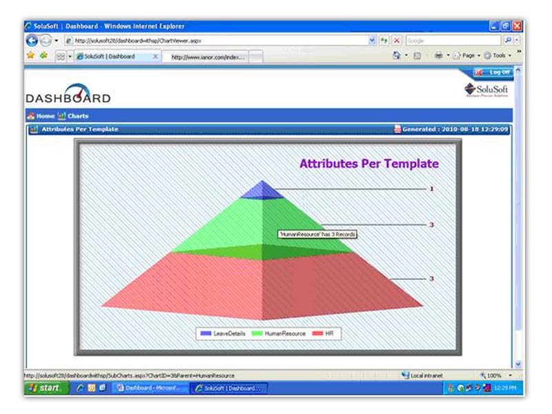 • Sophisticated Data Analysis: Dashboard offers advanced tools for data analysis and drill-sown. It gives the flexibility to customize different types of charts and reports. Users can generate several types of charts in 2D and 3D modes.