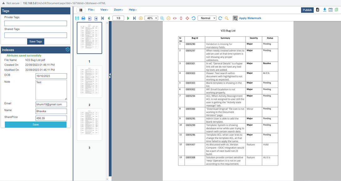 • Integration : An interface to external systems is available via APIs to link documents to external business systems such as ERP, HRM, AP and more.