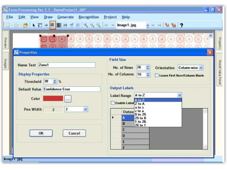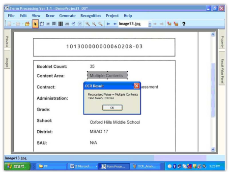 Forms Processor is a powerful zonal forms processing application that uses Barcode recognition, OCR and OMR (Optical Mark Recognition) to decipher the data on a scanned page. This application includes powerful form recognition and color drop out technology, extensive image clean up options and field based processing.