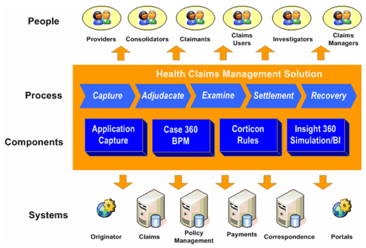 The Claims Management Solution Template provides end-to-end business process and content management in all key areas of the Claims Management Application process. It works with your existing claims payment system, policy management system, and EDI service providers. You can use your existing Correspondence system, or it can be provided separately. The system is modular and can be customized to your requirements. Advanced system architecture used requires no software distribution to your user clients, and process and rules can be maintained by your business operations staff.